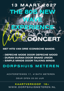 Na het geslaagde feest met een heerlijk optreden van “The Wave” gaan we 13 maart 2027 weer wat moois neerzetten. # bands met iconische nummers zullen een geweldig concert gaan geven in ons Dorpshuis. Hou onze facebookpagina in de gaten voor de start van de kaartverkoop.